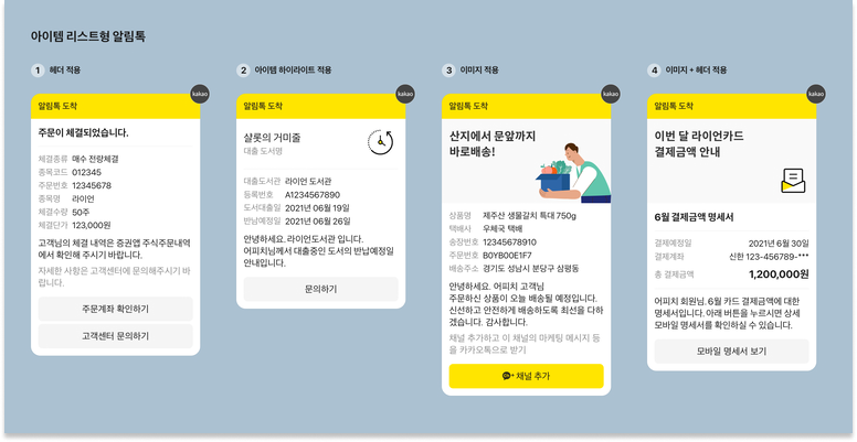 - 알림톡: 정보 전달에 특화된 서비스로, 고객 요청이나 필요한 정보를 전달하는 데 적합