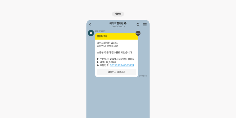 - 알림톡: 정보성 메시지 (예: 주문 확인, 배송 알림 등)
