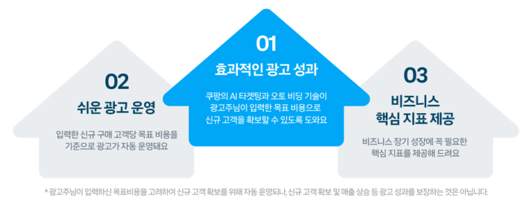 ✅ 쿠팡 광고는 ‘매출 성장’, ‘신규 고객 확보’, ‘인지도 강화’ 세 가지 비즈니스 목표에 따라 설계되었습니다.