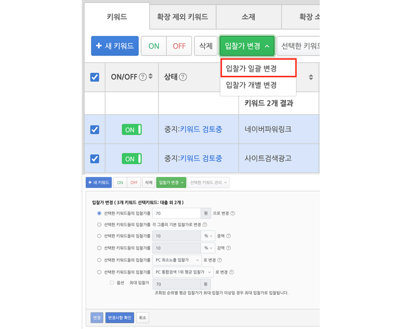 - 입찰가: 광고주가 해당 키워드에 대해 클릭당 지불할 의사가 있는 최대 금액입니다.