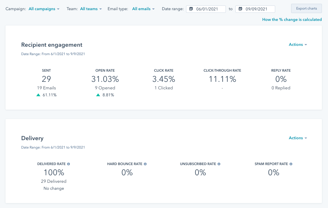- 이탈률: 이메일 수신 거부를 신청한 비율로, 마케팅 목록 관리와 메시지의 적절성을 평가하는 데 활용됩니다.
